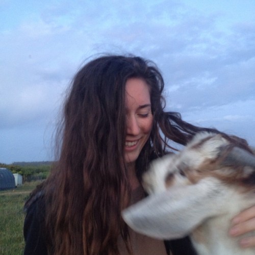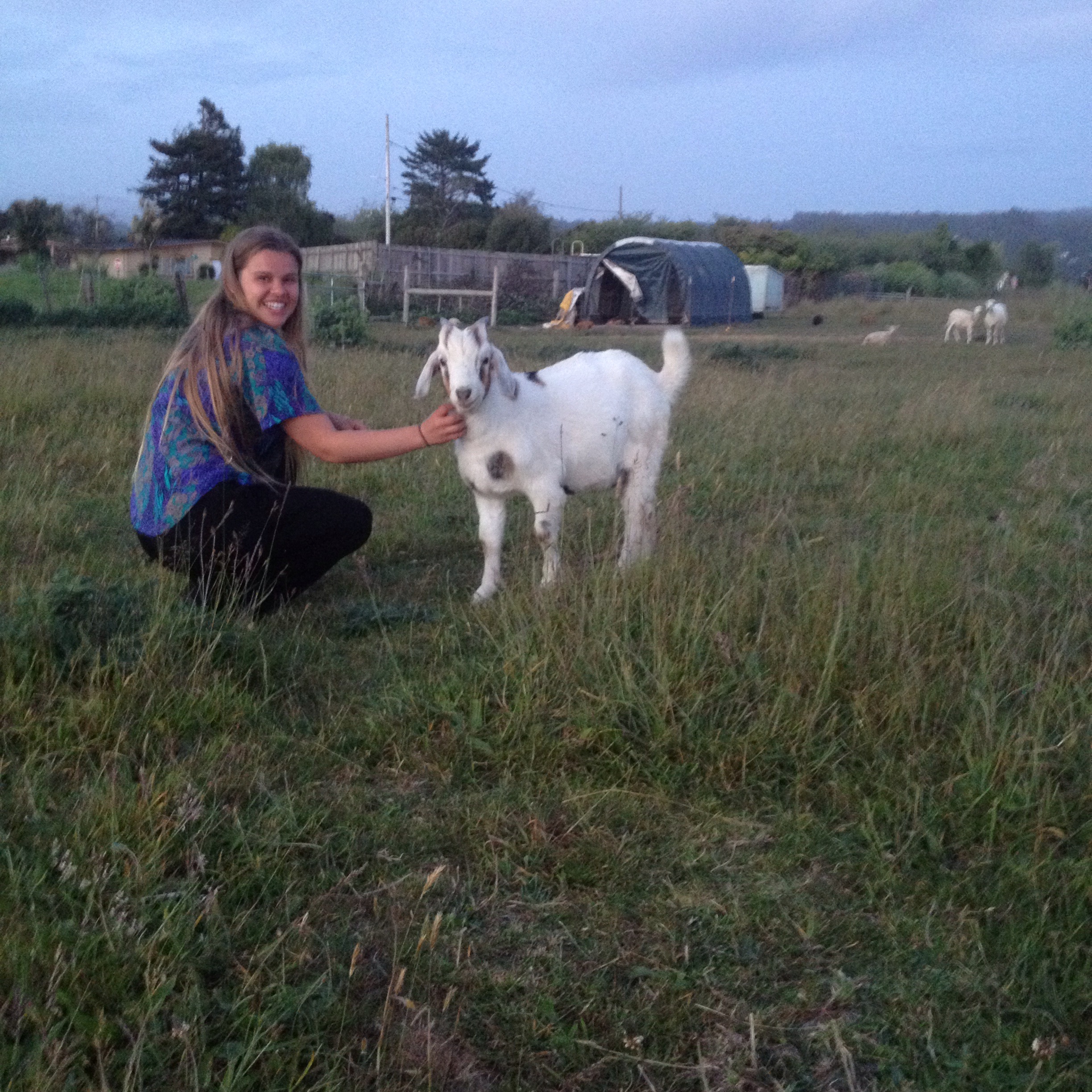 We we sitting in the grass surrounded by goats when Mariah jumped up.
